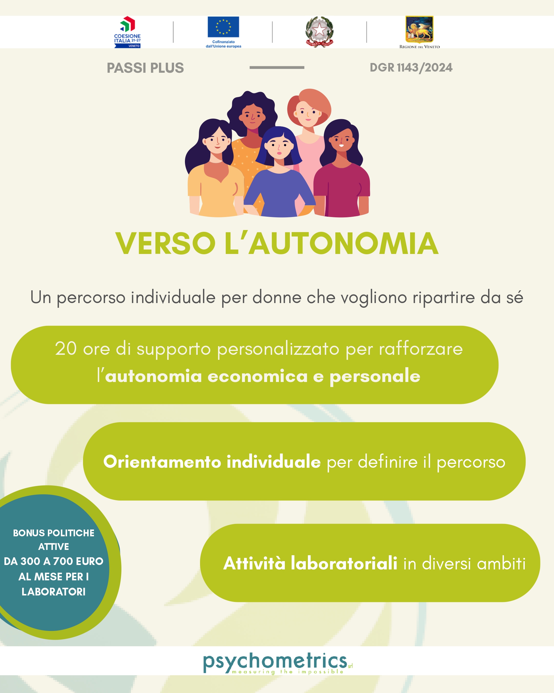 Locandina percorso di inserimento lavorativo per donne